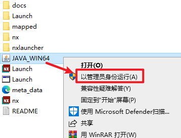 2.打开刚刚解压的文件夹,双击打开“NX2506”文件夹,选中“JAVA-x64位”右键选择“以管理员身份运行”