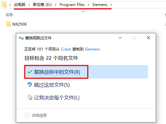 19.返回安装文件夹,双击打开“Crack”文件夹,复制“NX2506”文件