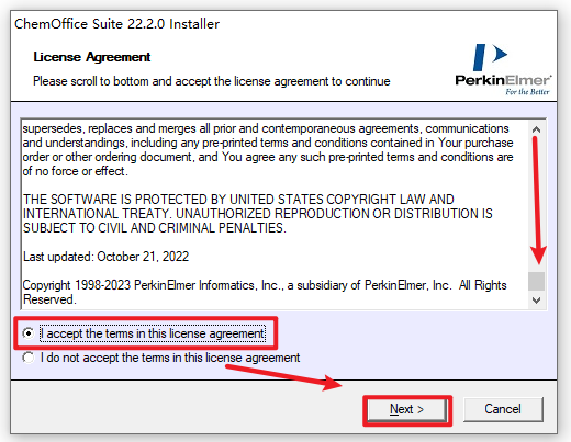 7.下拉进度条,选择“I accept ….”,点击“Next”