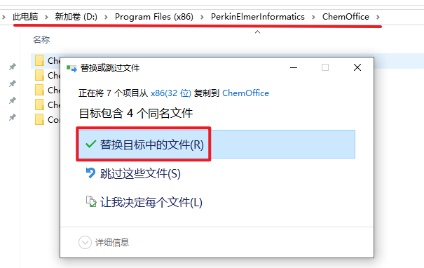 20.粘贴复制的文件到该路径下,选择”替换目标中的文件“