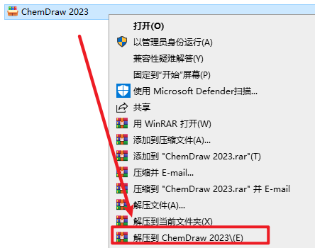 - 选中下载的压缩包,右键选择“解压ChemDraw 2023”