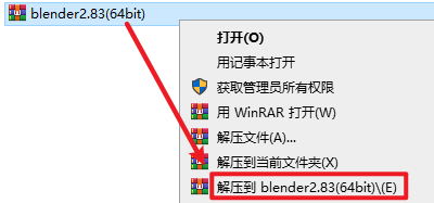 1.选中下载的安装包,然后右键选择“解压到 blender2.83(64bit)”