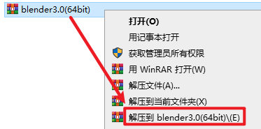 1.选中下载的安装包,右键选择“解压到 blender3.0(64bit)”