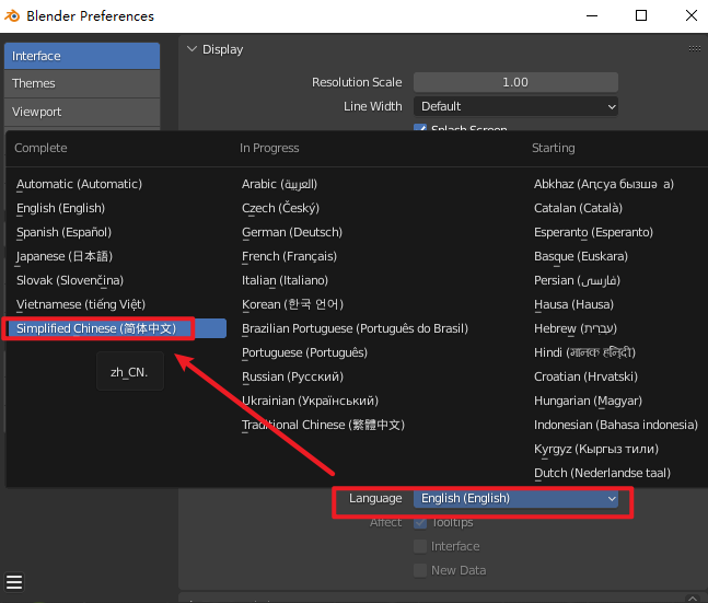 5.点击“Languege”选择“简体中文”