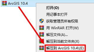 1.选中下载的安装包,右键选择“解压到 ArcGIS 10.4″