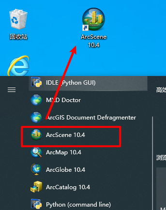 34.在开始菜单中找到”ArcMap“软件,并拖到桌面创建快捷方式