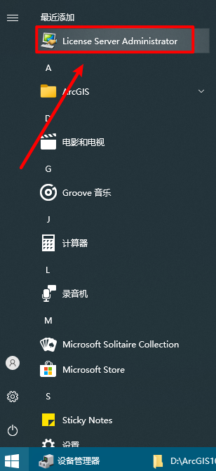 15.在开始界面中找到并打开“ArcGIS License Server Administrator”