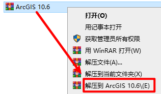 1.选中下载的安装包,右键选择“解压到 ArcGIS 10.6″