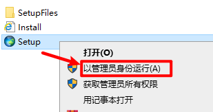 2.打开解压好的文件夹,选中“Setup”右键选择“以管理员身份运行”