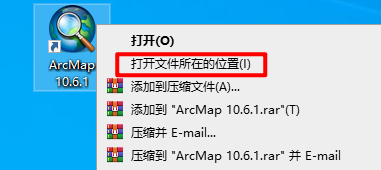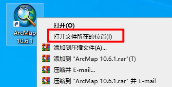 15.选中桌面上的”ArcMap 10.6.1“软件图标,右键选择“打开文件所在位置”
