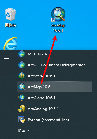 14.在开始菜单中找到”ArcMap“软件,并拖拽到桌面上即可创建桌面快捷方式