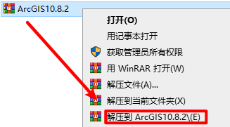 1.选中下载的压缩包,右键选择“解压到 ArcGIS 10.8.2″