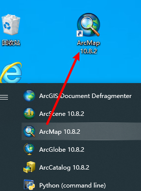 17.在开始菜单中找到”ArcMap“软件,并拖拽到桌面上创建快捷方式