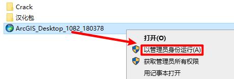 2.打开解压好的文件夹,选中“ArcGIS_Desktop_1082”右键选择“以管理员身份运行”
