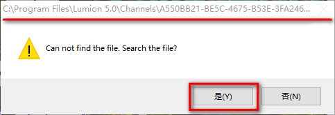 14.如果更改了软件安装目录,会弹出如下提示,点击“是”,需要手动找到软件安装目录(第5步设置的路径)下的ChannelsA550BB21-BE5C-4675….dll