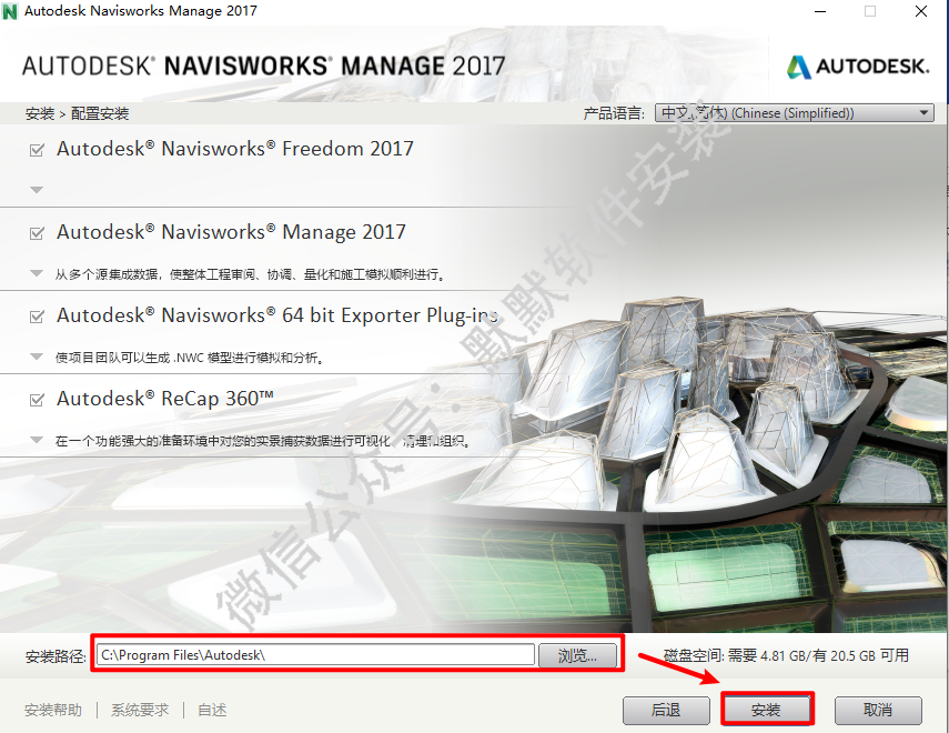 3.双击运行【Autodesk_Navisworks_Manage_2017_Multilingual_001_002.sfx.exe】