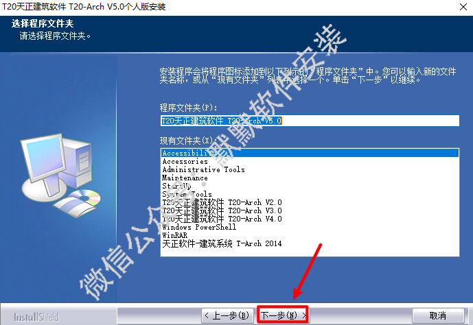 注:T20v5.0系列软件安装步骤一样,本文以天正建筑为例