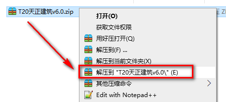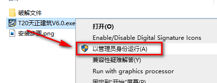 2.选中T20天正建筑V6.0安装程序,右键以管理员身份运行