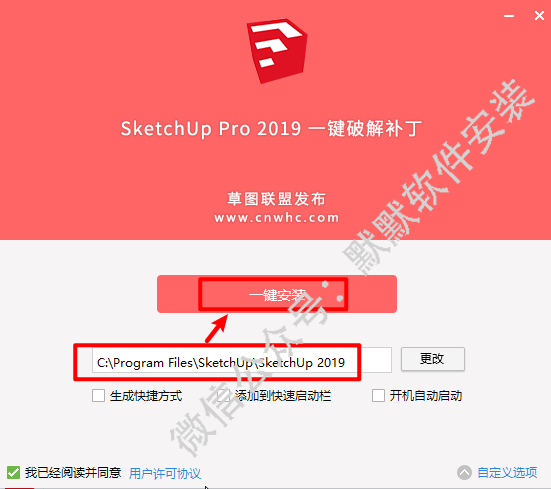 12.更改路径,必须与软件安装路径(第5步设置的路径)一致,点击“一键安装”