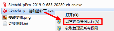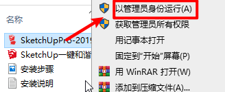 2.选中SketchUpPro-2019,鼠标右击选择“以管理员身份运行”