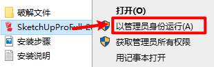2.选中SketchUpProFull-2020-0-363-132,鼠标右击选择“以管理员身份运行”