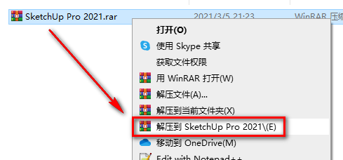 1.鼠标右键解压到“SketchUp Pro 2021”