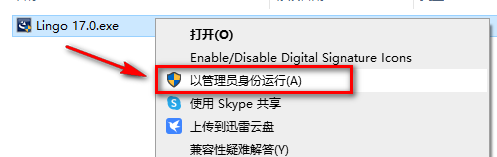 3.选中Lingo 17.0,右键选择“以管理员身份运行”