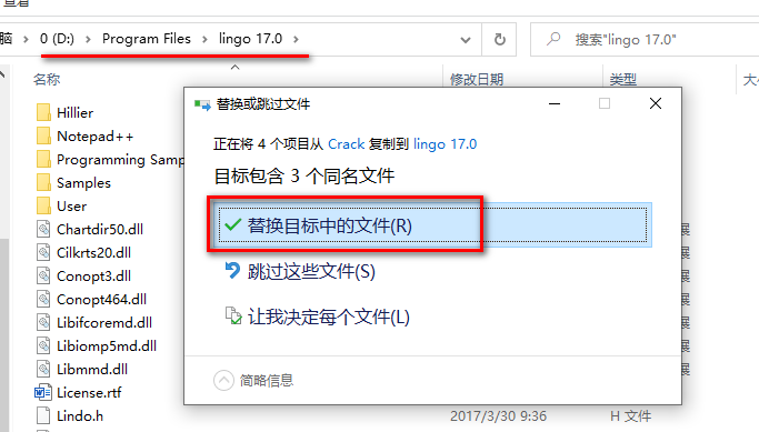 12.粘贴到软件安装位置(第6步设置的路径),点“替换目标中的文件”