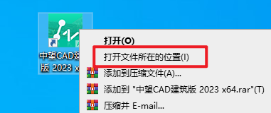 10.桌面找到“中望CAD建筑版 2023”软件图标,鼠标右键选择“打开文件所在位置”
