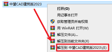 1.选中下载的压缩包,然后鼠标右键选择“解压到 中望CAD建筑版2023”