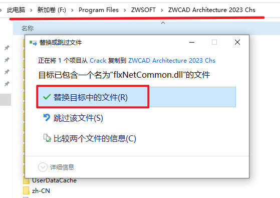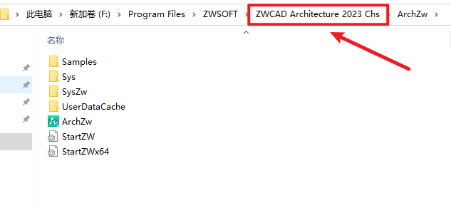 11.在路径栏点击“ZWCAD Architecture 2023 Chs“