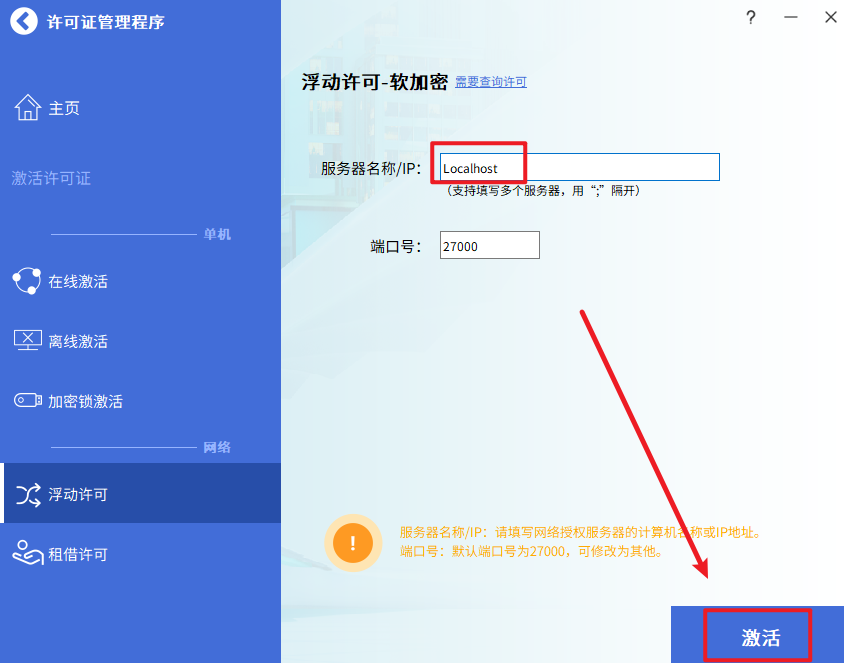 18.输入:Localhost,点击“激活“