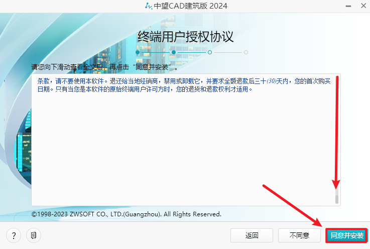 4.下滑阅读协议,点击“同意并安装”