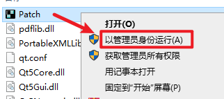 11.选中“PATCH”文件,鼠标右键点击选择“以管理员身份运行”