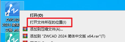 9.在桌面上找到“ZWCAD 2024 简体中文版”软件图标,鼠标右键选择“打开文件所在位置”