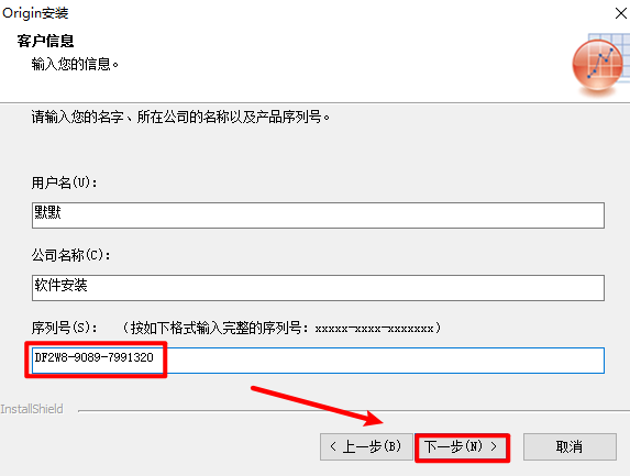 7.用户名和公司名称随便输入,序列号输入:DF2W8-9089-7991320,点“下一步”