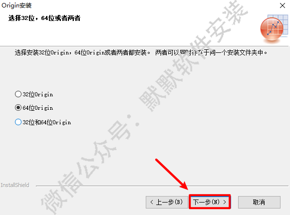 9.选择与自己系统位数一致的安装,32位系统选择“32位Origin”,64位系统选择“64位Origin”,点“下一步”