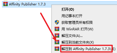 1.选中下载的安装包,右键选择“解压到 AffinityPublisher 1.7.3”