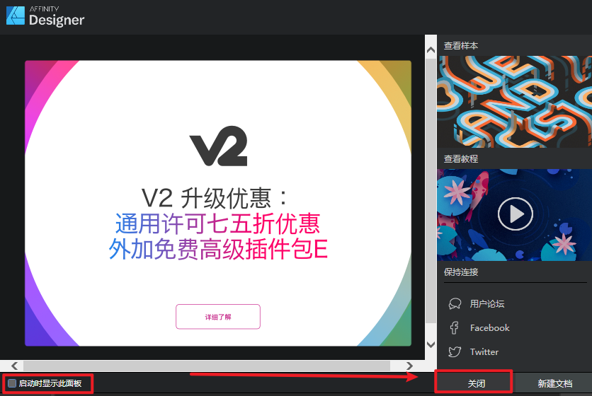 14.取消勾选“启动时显示此面板”,点击“关闭“