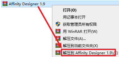 1.选中下载的安装包,右键选择“解压到 Affinity Designer 1.9”
