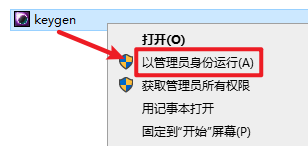 9.选中“keygen”文件,右键选择“以管理员身份运行”