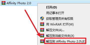 1.选中下载的安装包,右键选择“解压到 Affinity Photo 2.0”