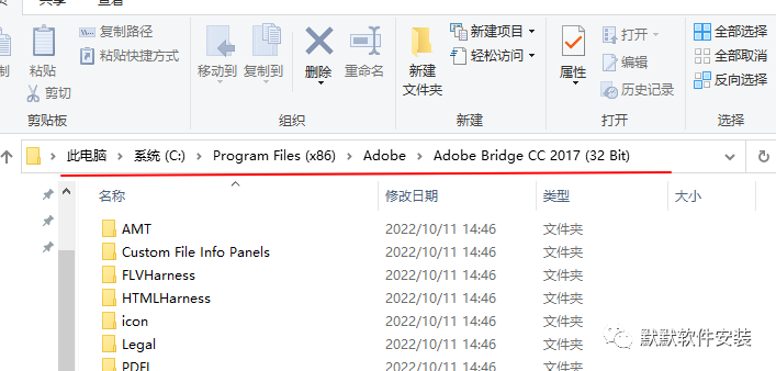 8.打开软件安装目录,默认路径为:C:ProgramFiles(x86)AdobeAdobe Bridge CC 2017(32 Bit)