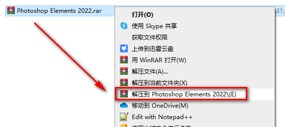 1.右键安装包解压到Photoshop Elements 2022