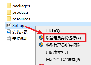 2.打开解压好的文件夹,选中“Setup”右键选择“以管理员身份运行”