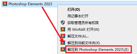1.选中下载的安装包,右键选择解压到“Photoshop Elements 2023”