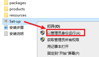 2.打开解压好的文件夹,选中“Setup”右键选择“以管理员身份运行”