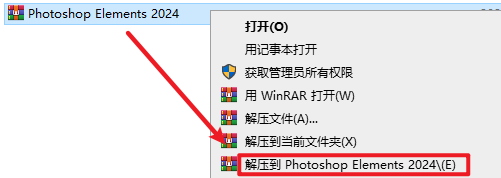 1.选中下载的安装包,右键选择“解压到 Photoshop Elements 2024”