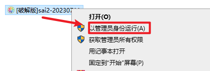 2.打开解压好的文件夹,选中“[破解版]sai2-20230711”右键选择“以管理员身份运行”