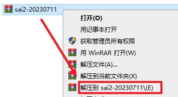 1.选中下载的安装包,然后右键选择“解压到 sai2-20230711”